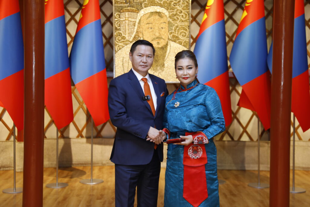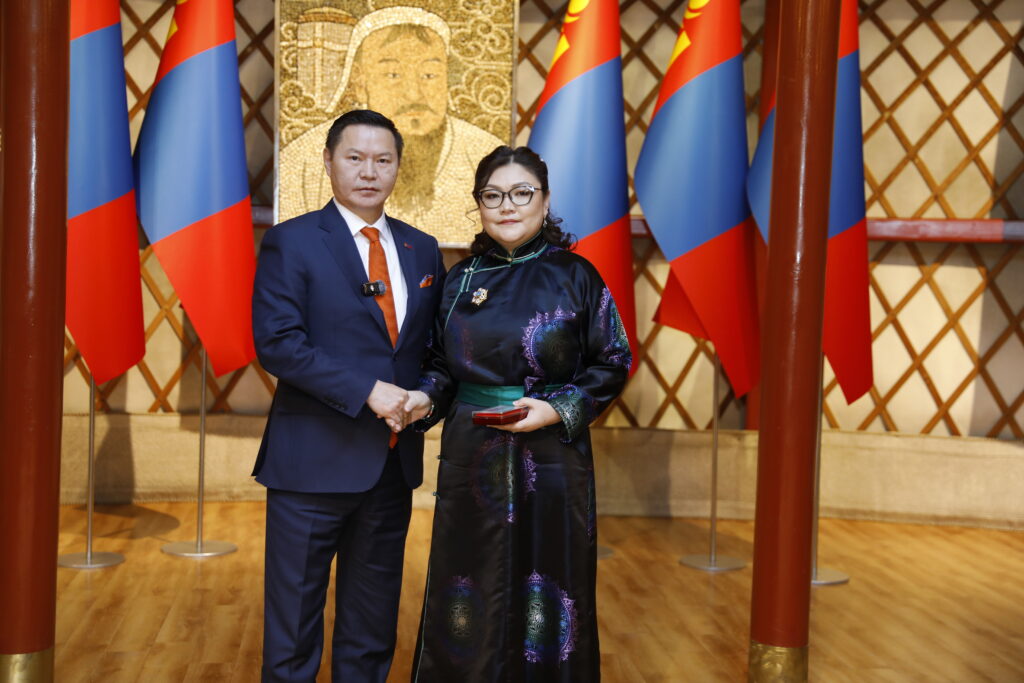 Монгол Улсын Ерөнхийлөгч Ухнаагийн Хүрэлсүхийн зарлигаар Анхдугаар Үндсэн хуулиа баталж, Бүгд Найрамдах Улсаа тунхагласны түүхт 101 жилийн ойг тохиолдуулан үндэсний үйлдвэрлэгч, баялаг бүтээгчдэд төрийн дээд цол, одон, медаль хүртээлээ.